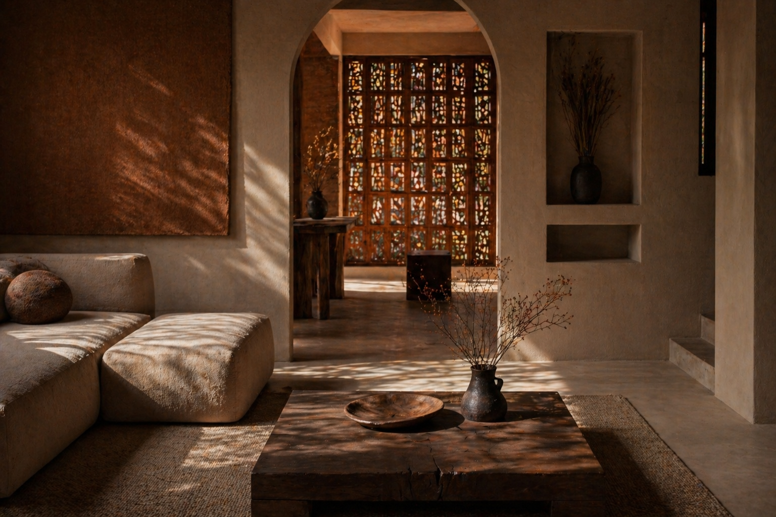 A contemporary living space designed with natural materials and warm tones, inspired by local architecture and climate. The project explores light, texture, and spatial flow to create a calm and grounded environment.